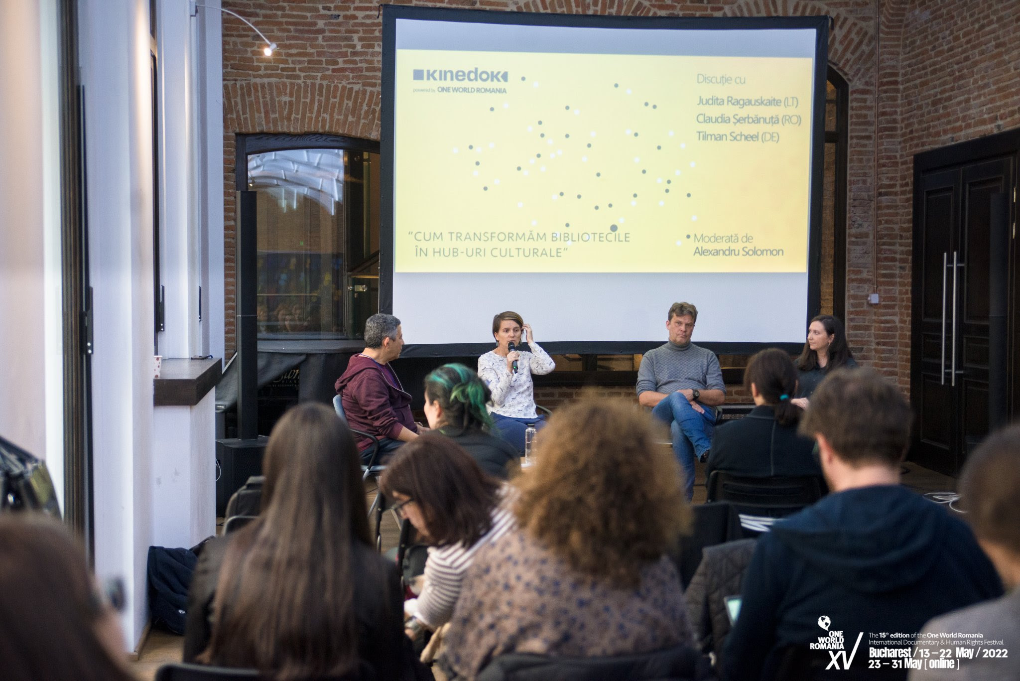Totodată, bibliotecile au fost în centrul atenției și în București, prin alte două proiecte organizate de Asociația One World Romania. La ediția #15 a festivalului de film documentar și drepturile omului One World Romania (13 – 22 mai), a avut loc o dezbatere despre „Cum transformăm bibliotecile în hub-uri culturale”, susținută în cadrul KineDok, proiectul european de distribuție alternativă de film documentar.