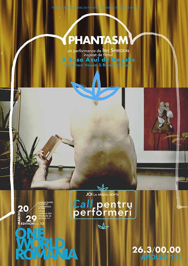 It is precisely with this repression of sexual fantasies in the name of decency and of frustrating social norms that hinder the expression of one's personality that we have decided to play during the festival. Thursday, on the 26th of March, at midnight, after the screening of the film The Blue Flower of Novalis, a spectacle-performance named Phantasm, coordinated by the theater director Iris Spiridon, will take place at Apollo 111, performance during which the participants will be able to express and perform their most hidden dreams without fear of being judged.