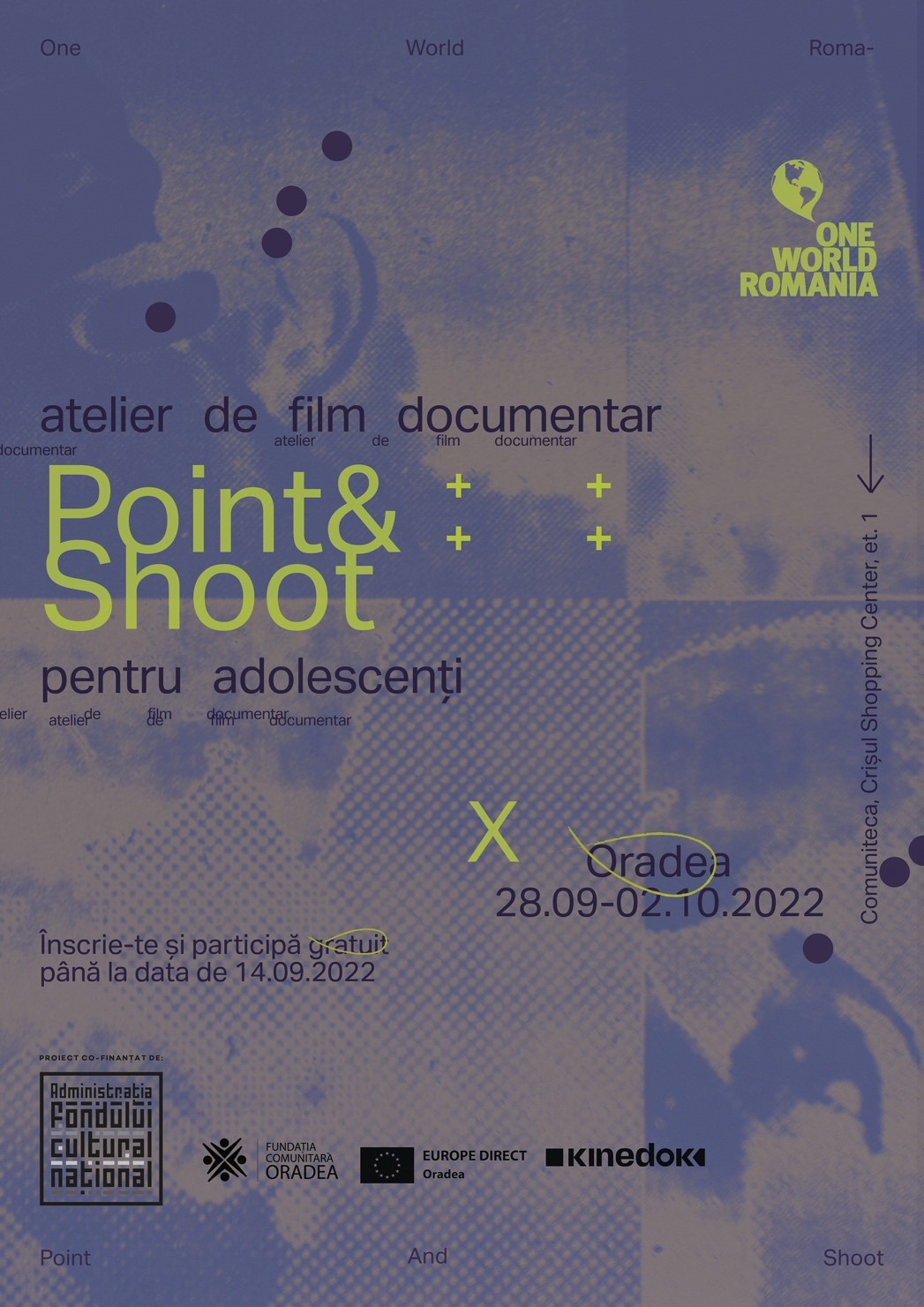 Asociația One World Romania invită tinerii cu vârstele cuprinse între 14 și 19 ani din Oradea să se înscrie până în 14 septembrie 2022 la atelierul de film documentar Point & Shoot.