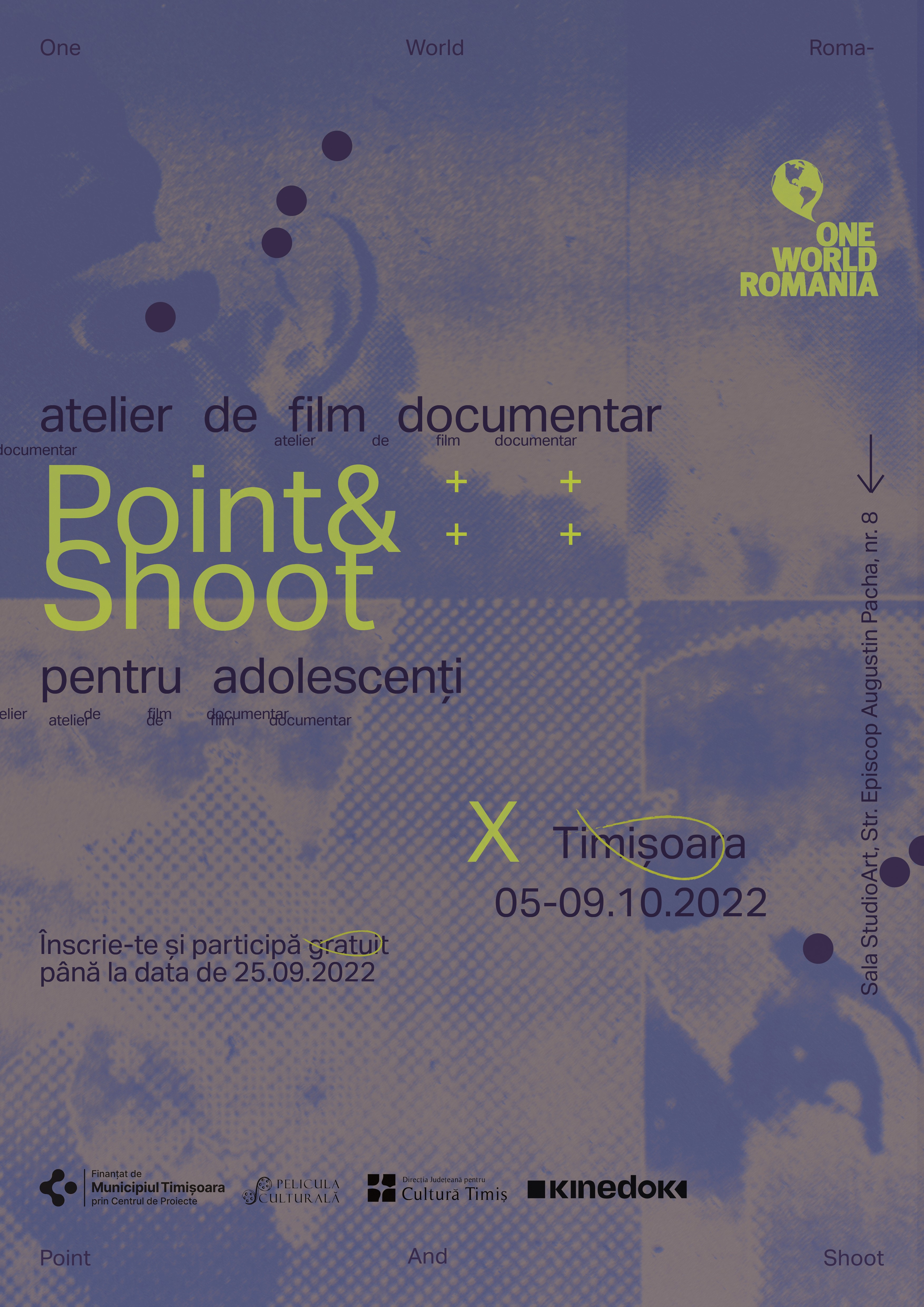 Asociația One World Romania invită tinerii cu vârstele cuprinse între 14 și 19 ani din Timișoara să se înscrie până în 25 septembrie 2022 la atelierul de film documentar Point & Shoot.