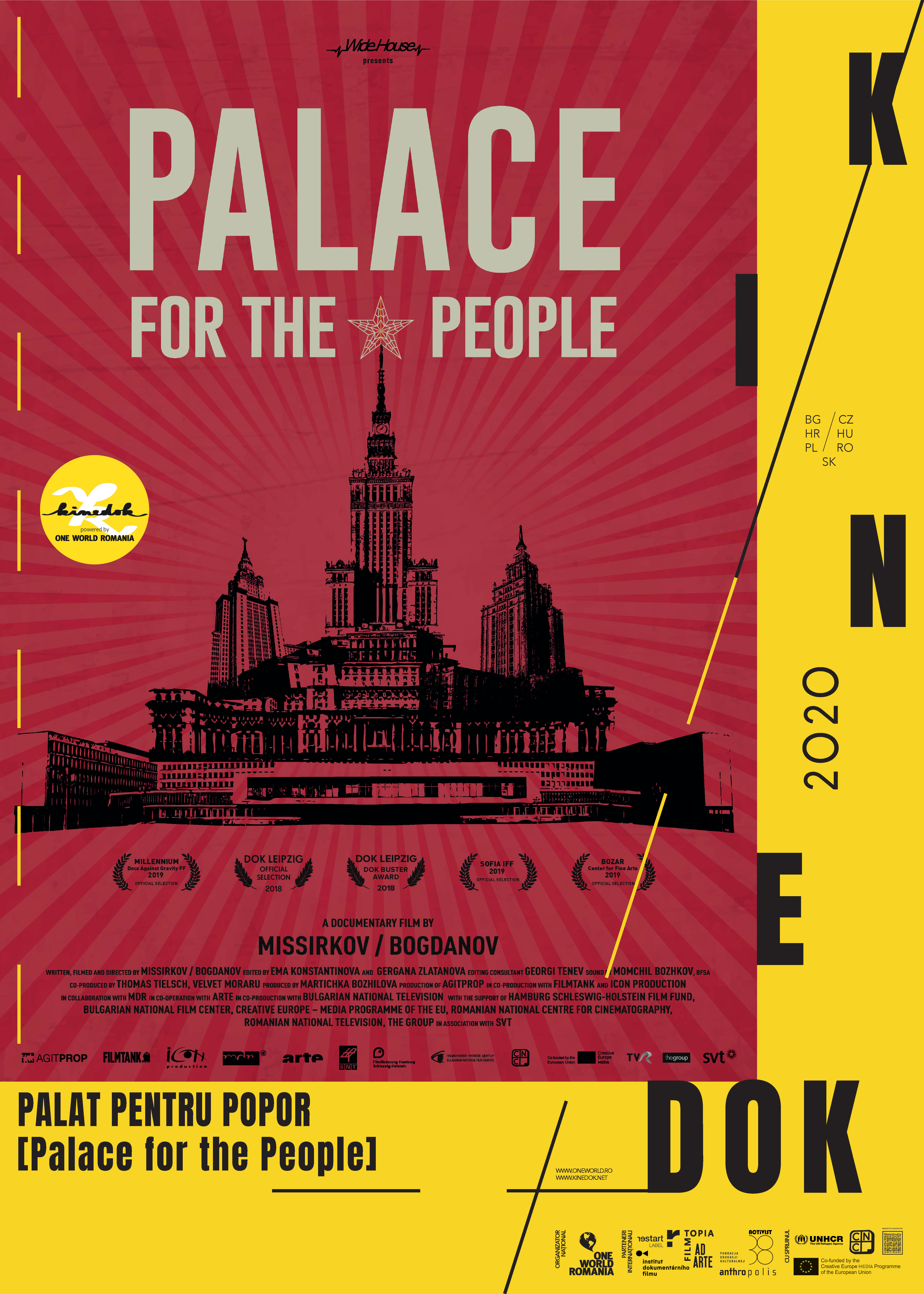 KineDok lansează un exercițiu de revizitare imaginară a trecutului prin prisma documentarului „Palat pentru popor”, ce spune poveștile a cinci dintre cele mai cunoscute clădiri ale fostului bloc socialist european. Palatul Național al Culturii din Sofia, Universitatea de Stat din Moscova, Palatul Parlamentului din București, Palatul Federației din Belgrad și Palatul Republicii din Berlin sunt creaturi arhitectonice unice, construite cu mult curaj și cu un strop de nebunie, pentru a le reaminti oamenilor de existența unei puteri absolute și a unui viitor luminos. Fiecare dintre aceste clădiri este pe rând: cea mai înaltă, cea mai voluminoasă, are cel mai mare ceas din Europa, a fost construită folosind cea mai avansată tehnologie a timpului său. Toate reprezintă inițiative grandioase ale unor vremuri când binele colectiv era politică de stat.