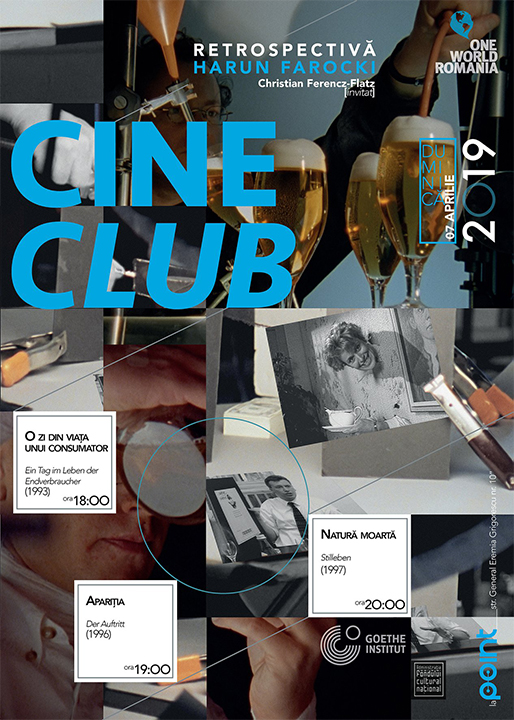 În luna aprilie Cineclubul One World Romania este dedicat cineastului german Harun Farocki. Duminică, 7 și 21 aprilie, începând cu ora 18:00 la POINT arătăm cinci filme ale sale. Dacă vreți să descoperiți și mai mult din opera lui, aveți ocazia în cadrul expoziției „Despre deteritorializarea muncii”, organizată între 4 și 25 aprilie de Goethe Institut București, în colaborare cu Neuer Berlin Kunstverein.