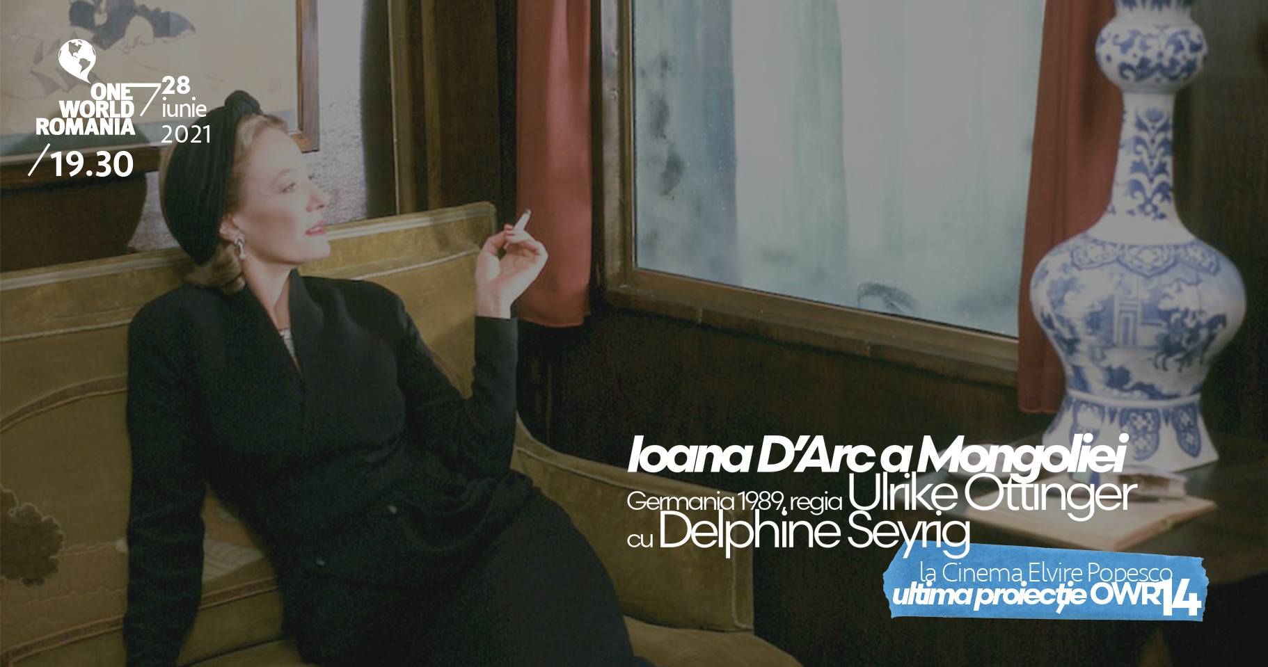 În încheierea atât a retrospectivei dedicate cineastei Ulrike Ottinger, cât și a celei dedicate activității mai puțin cunoscute de militantă feministă a lui Delphine Seyrig, One World Romania va proiecta luni, 28 iunie, de la orele 19.30, la Cinema Elvire Popesco, colaborarea finală dintre cele două, care a fost și ultimul film al actriței franceze: „Ioana D’Arc a Mongoliei”.